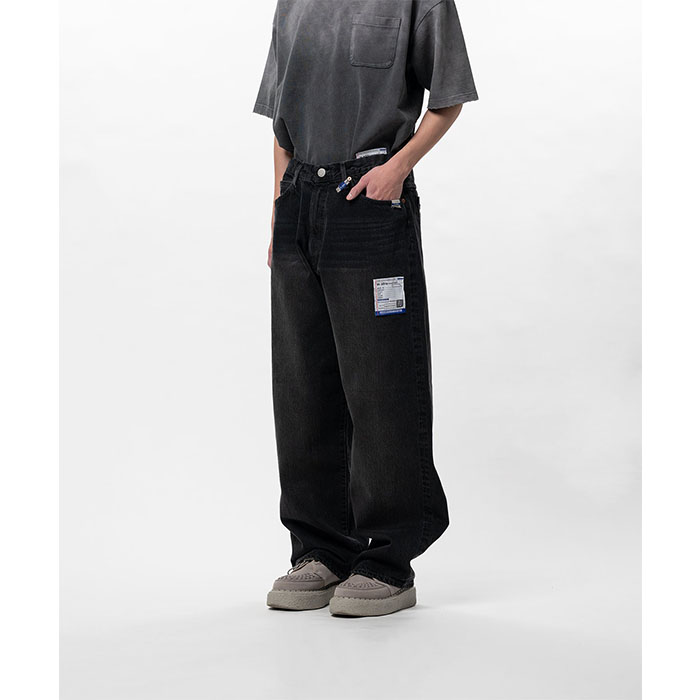 in・stru(men-tal). インストルメンタル / HARD WASHED SELVAGE DENIM BAGGY PANTS (black) [MIHARAYASUHIRO-I16PT083]
