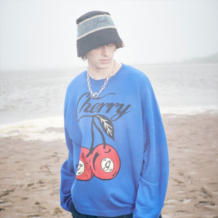 “Rebirth”をテーマに掲げる今季、バケットハットのシルエットを再考し温かみあるマテリアルで提案するRebirth Bucket Hat。ウール混のオリジナルタムを用いたボディはクラウンにピッチの異なるラインをジャカードで編み立て、さらにglambスピンロゴを刺繍。ブリムの角度を浅くすることでセーラーハットライクな目深なスタイリングも可能にしています。編地によるブリムのラインもそのムードを演出。滑らかさと柔らかさのある優しい風合いを生かすべく、あえて型に沿わせてシルエットを固定する工程は省略。国内のファクトリーが持つ物作りの感覚が素材とデザインを最高の形で融合させました。