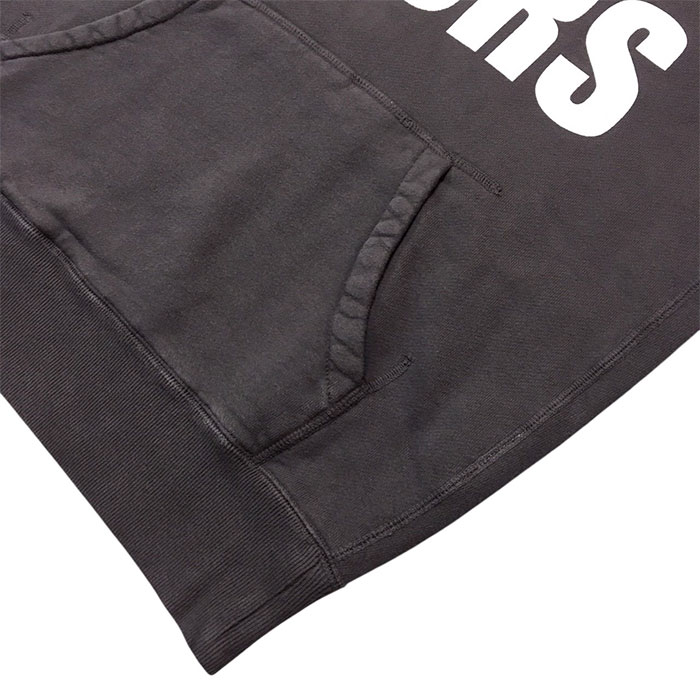 普段のTMT YOURSパーカーでは、袖にプリントを打ちませんが、今回はヴィンテージ加工を施しているので配置。