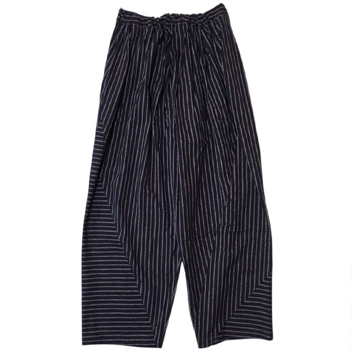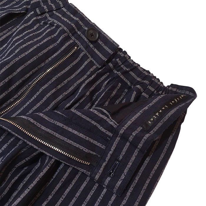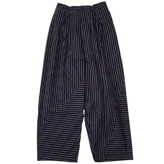 【UNISEX】my beautiful landlet マイビューティフルランドレット / STRIPED CURL YARN TROUSERS (navy)