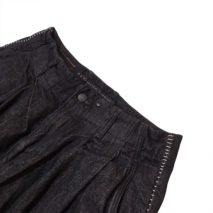 【UNISEX】my beautiful landlet マイビューティフルランドレット / MBL FLOWER EMBROIDERY DENIM PANTS (black one wash)