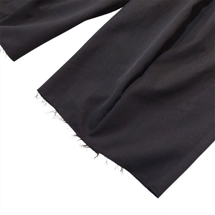 毛羽を抑えたクリア仕上げのタテヨコ72番手ウール混ウォッシャブルツイルを使用。