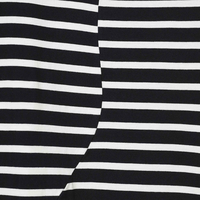 印象的な曲線のカッティングとズレたボーダーが何とも愛くるしいシンプルな1着。