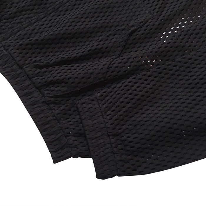 光沢感とハリ感のあるコットンメッシュ素材で、さらっとした肌触りと大きめのメッシュ柄が特徴。