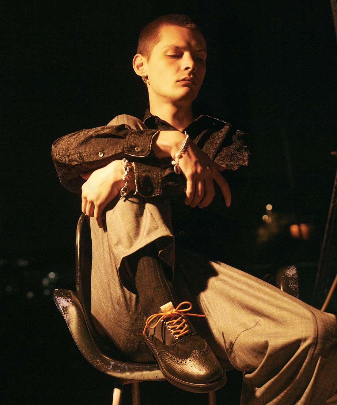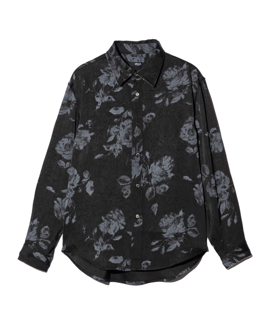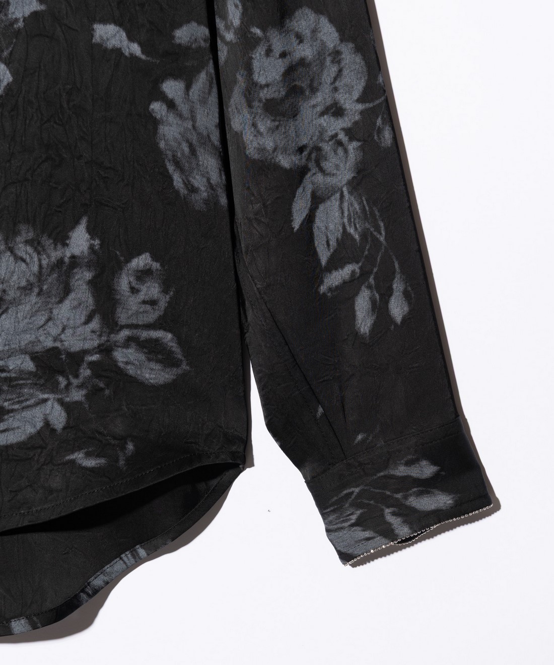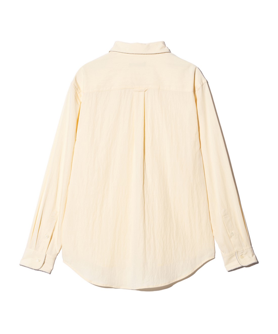 フォーマルファッションに対する煌びやかな解釈でロックマインドに溢れたシャツスタイルを提案するStuds Line Shirt。テキスタイルはWhiteには皺感あるこなれた風合いのレーヨンコットン、Black系の2色はいずれも総柄生地を使用。ゆとりある着丈と身幅を組み合わせたルーズシルエットのボディは、襟とカフスにスタッズテープを配してグラマラスなニュアンスを加えています。さらに身生地と同生地、同テープを配したスカーフをリングとともに付属。ブランドの美学を反映したトップススタイリングがこちら1枚で完成します。