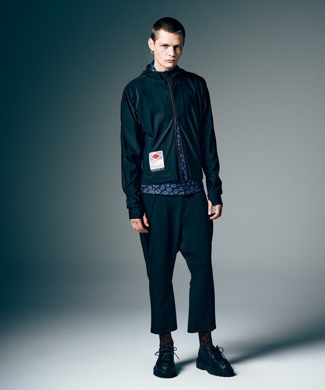 ストリートの定番となるラインジャージにサーフのエッセンスを掛け合わせたRash Guard Hood Jersey。テキスタイルに用いたのは速乾性と軽量性を兼ね備えるエステルテキスタイル。サマーシーズンのラッシュガードとしても絶好の素材感となっております。スポーティなラインをあしらったボディはフード付きのハイネックを備えており、首周りにルーズなドレープを描出。11分丈の袖口にはサムホールを、サイドにはドローコードを、さらに前合わせはダブルジップ仕様となっており自在なスタイリングアレンジを叶えます。ポケット内にはジップを設けて、車の鍵など貴重品が落ちないよう工夫を。裾には今季登場となるスペックタグを配してミリタリーライクなアクセントを添えました。シルエットはルーズな身幅にショート丈を掛け合わせたものとなっており、今らしく着こなしていただけます。
