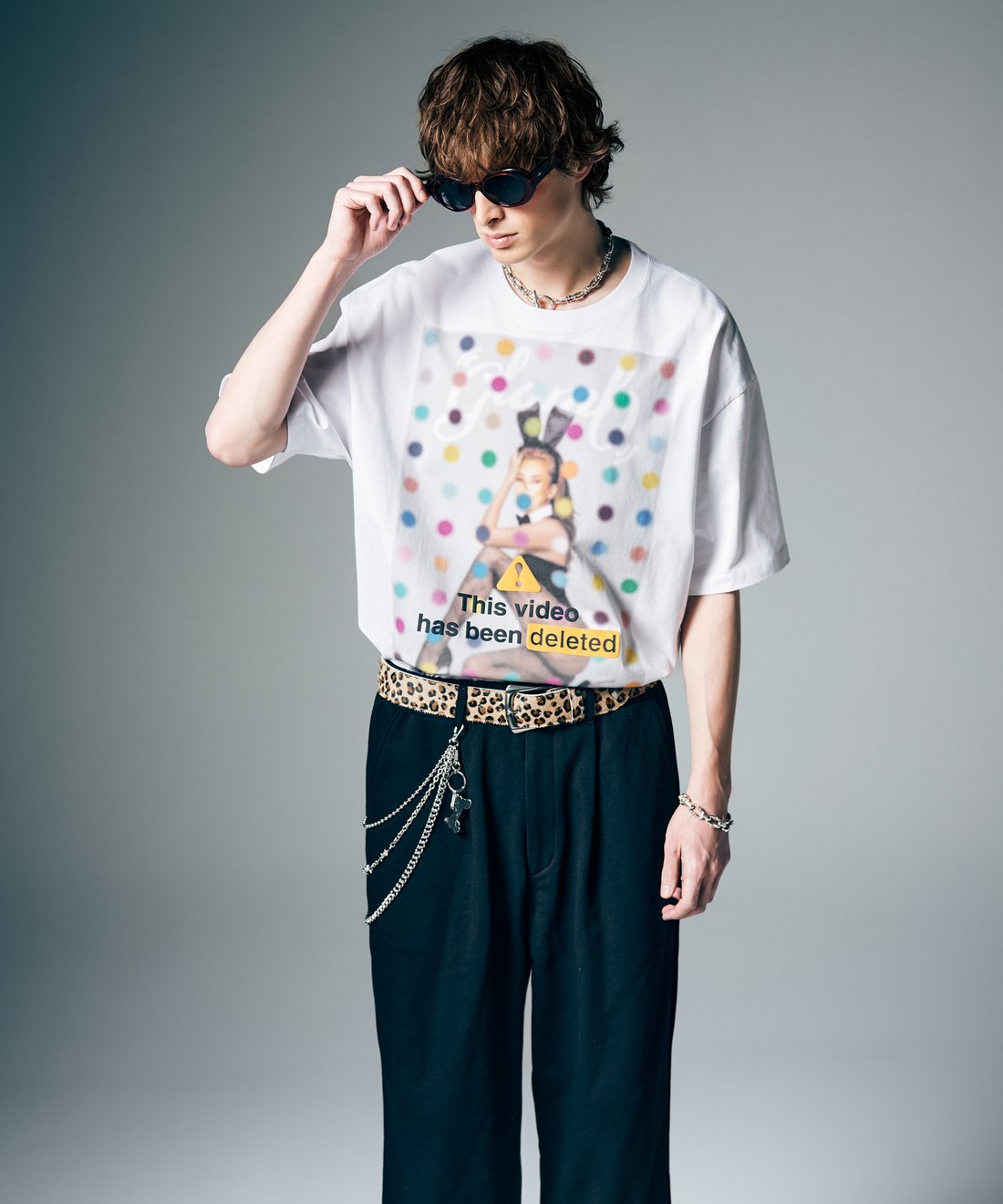 コンテンポラリーなデザインの中にglambならではのウィットを隠し込ませたBunny Girl T-Shirt。ポップアートと共に画面の向こうにぼかされたのはポーズを取るバニーガール。ストリーミングサイトの定番メッセージが残念な知らせを伝えます。テキスタイルに用いたのは表面の毛羽立ちを極限まで抑えて上質で滑らかな肌触りをもたせたコットン100%コンパクトコーマ。ストリートフレンドリーなビッグシルエットは抜け感ある着こなしを演出します。