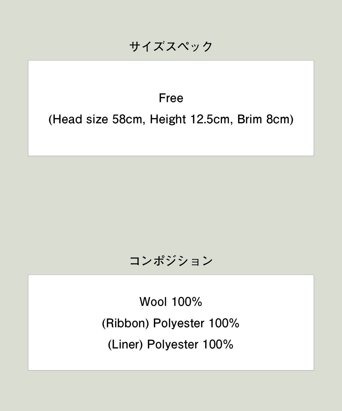 ■サイズ : Free (Head size 58cm, Height 12.5cm, Brim 8cm)