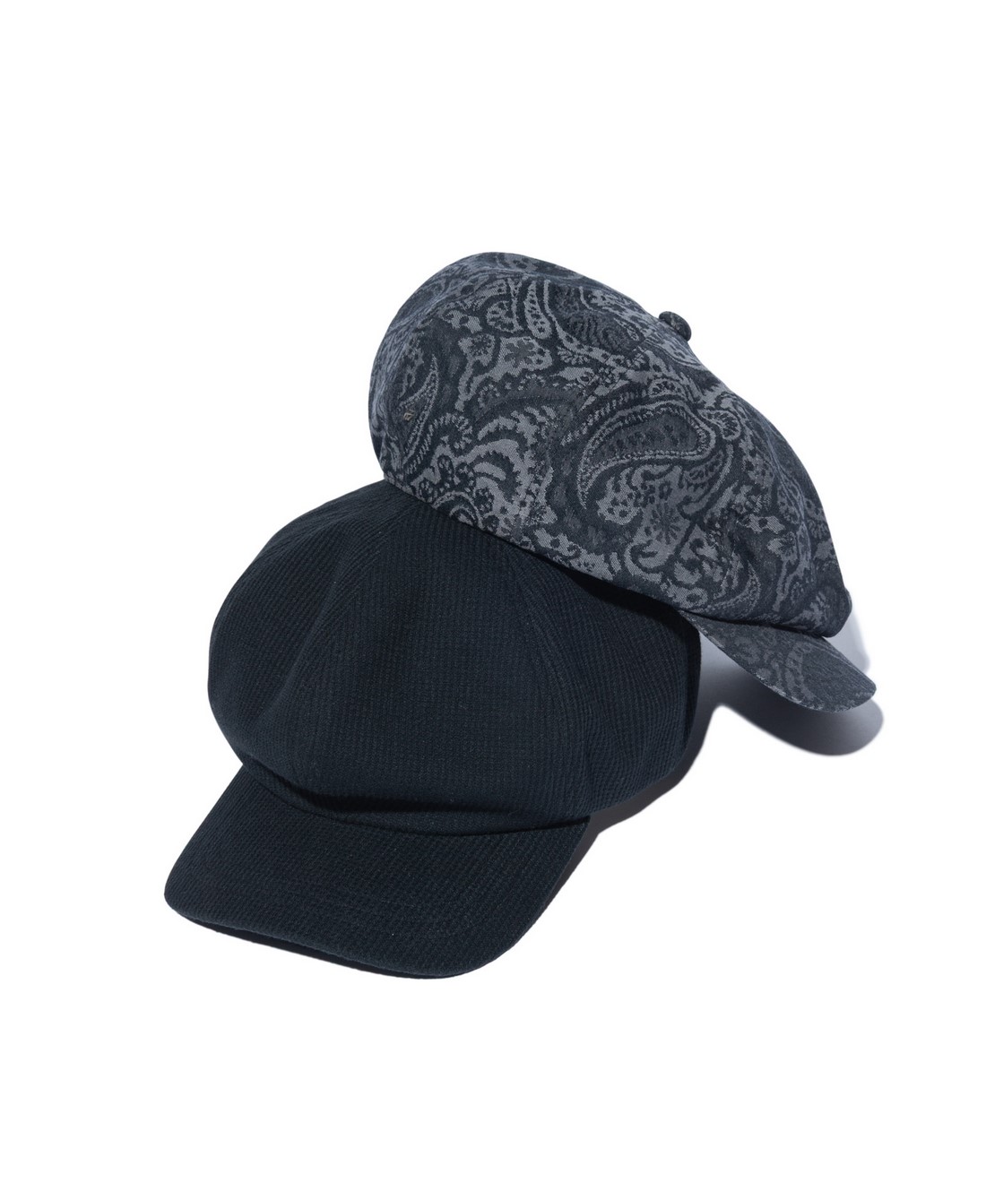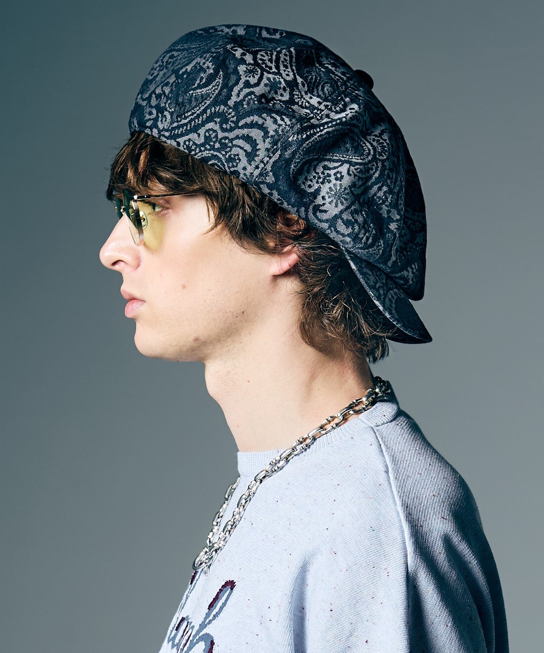 キャスケットとハンチングというパンクスタイル定番のモチーフを融合したDeformed Casquette。シルエットはキャスケットのボリュームある形状をベースにしながら、横幅をハンチングのようにタイトに。前被りの他、フロントトゥバックで額部分にボリュームを持たせれば真新しいシルエットが生まれます。2色のカラーバリエーションはGrayはペイズリージャカード、Blackはワッフルとそれぞれムード異なるテキスタイルでご用意。いずれも国内生産ならではのクオリティを感じさせる一品です。