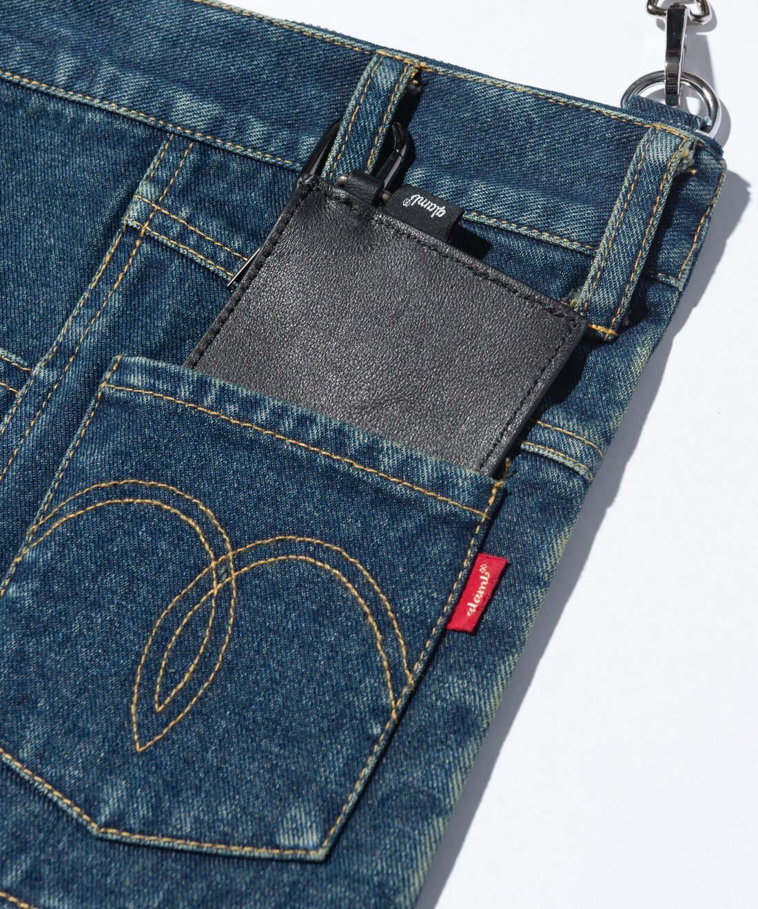 glambのデニムクラフトをスモールバッグに閉じ込めたAged Denim Bagが登場。デニムを横から見たようなルックのボディは、アタリを丹念に加えてリアリティあるエイジングの面持ち。背面にもベルトループをあしらったウィットあるデザインとなっています。収納はボディ上部のジップにより開閉する本体に加えてデニムの2ポケットも使用可能。ご使用の際は手提げの他、ベルトループに通したアレンジもおすすめです。