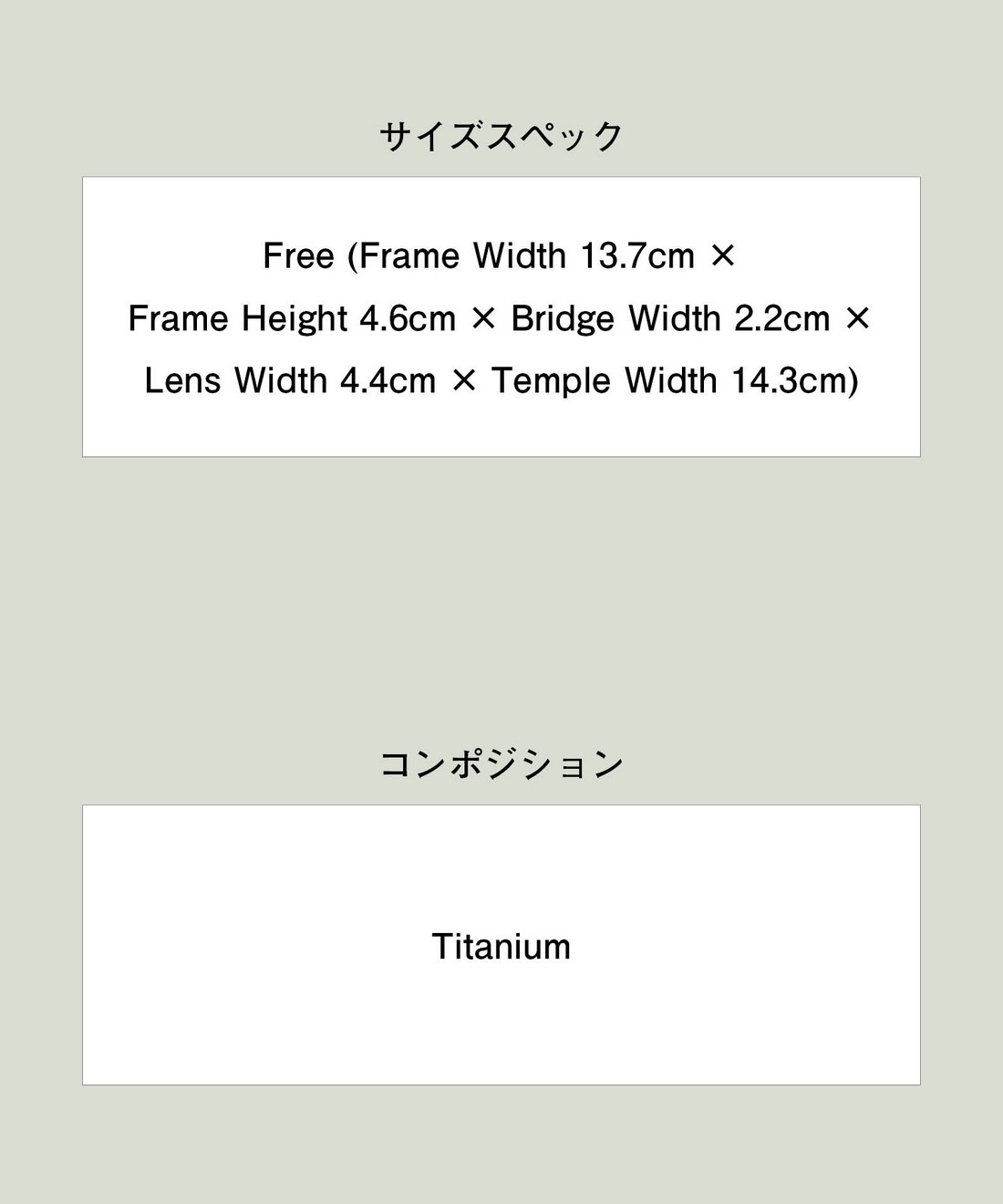 ■サイズ : Free (Frame Width 13.7cm×Frame Height 4.6cm×Bridge Width 2.2cm×Lens Width 4.4cm×Temple Width 14.3cm)