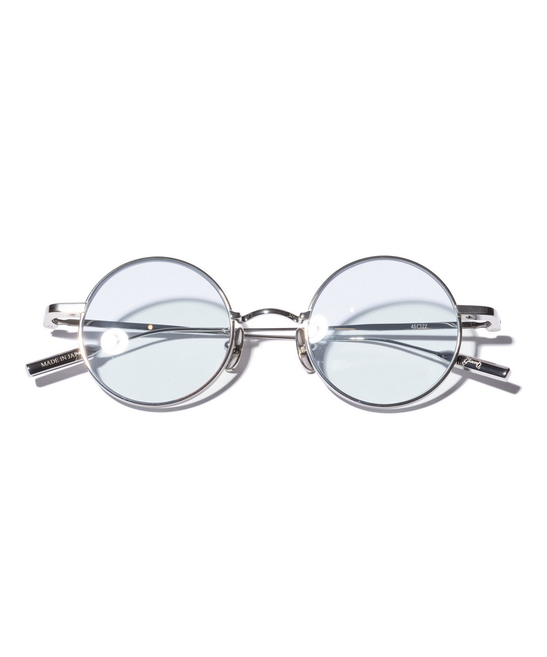 カウンターカルチャーの象徴として多くのロックスターに愛用されてきたフォルムをモダンストリートへ送り出すTimeless Teashade Sunglasses。カラーバリエーションごとにGoldはべっ甲フレームにブラウンレンズ、Silverはシルバーフレームにブルーレンズを使用。世界的なアイウェア生産地である福井県鯖江のファクトリーが、軽く耐久性に優れアレルギーフリーとなるチタンを用いて、上質な一本を作り上げました。付属となるのが今季のグラフィックを意匠としたレンズクロスと、glambスピンロゴをあしらったケース。長くご愛用していただきたく隅々までデザインを込めました。