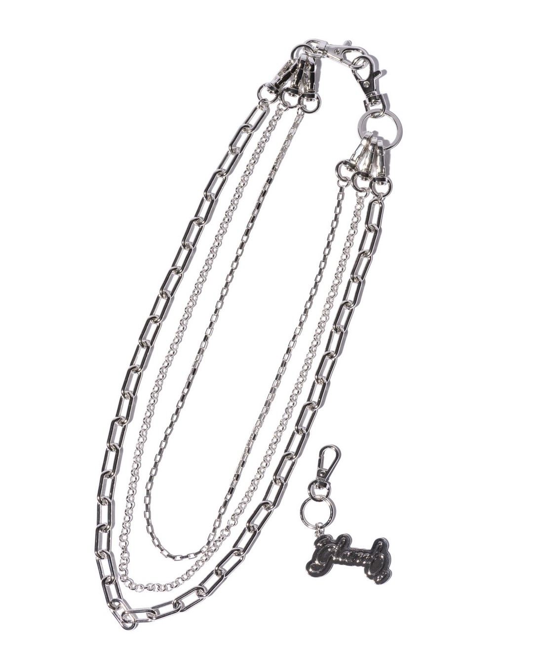 着脱可能なトリプルレイヤードがマルチなスタイリングを叶える2WAY Stack Chain。3種の異なるチェーンは腰元にリュクスな存在感を演出。glambスピンロゴのチャームもアクセントとなるこちらは気分に応じて単体使いや2連使いのアレンジも可能に。さらに取り外せばネックレスとしても着用できる、使い回しに優れた一本です。