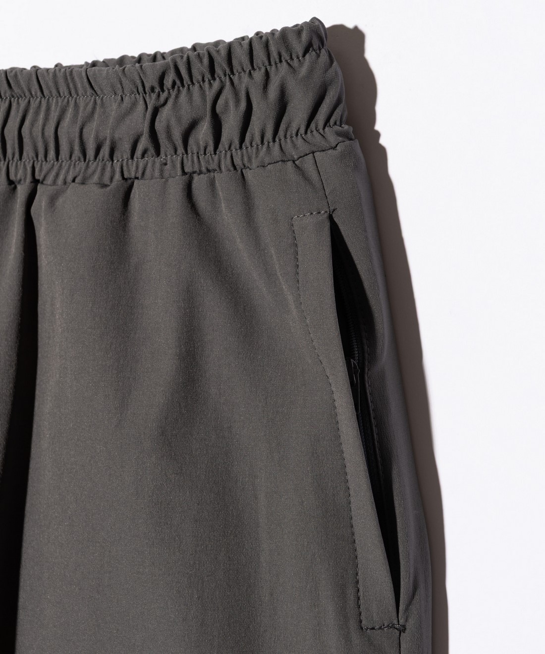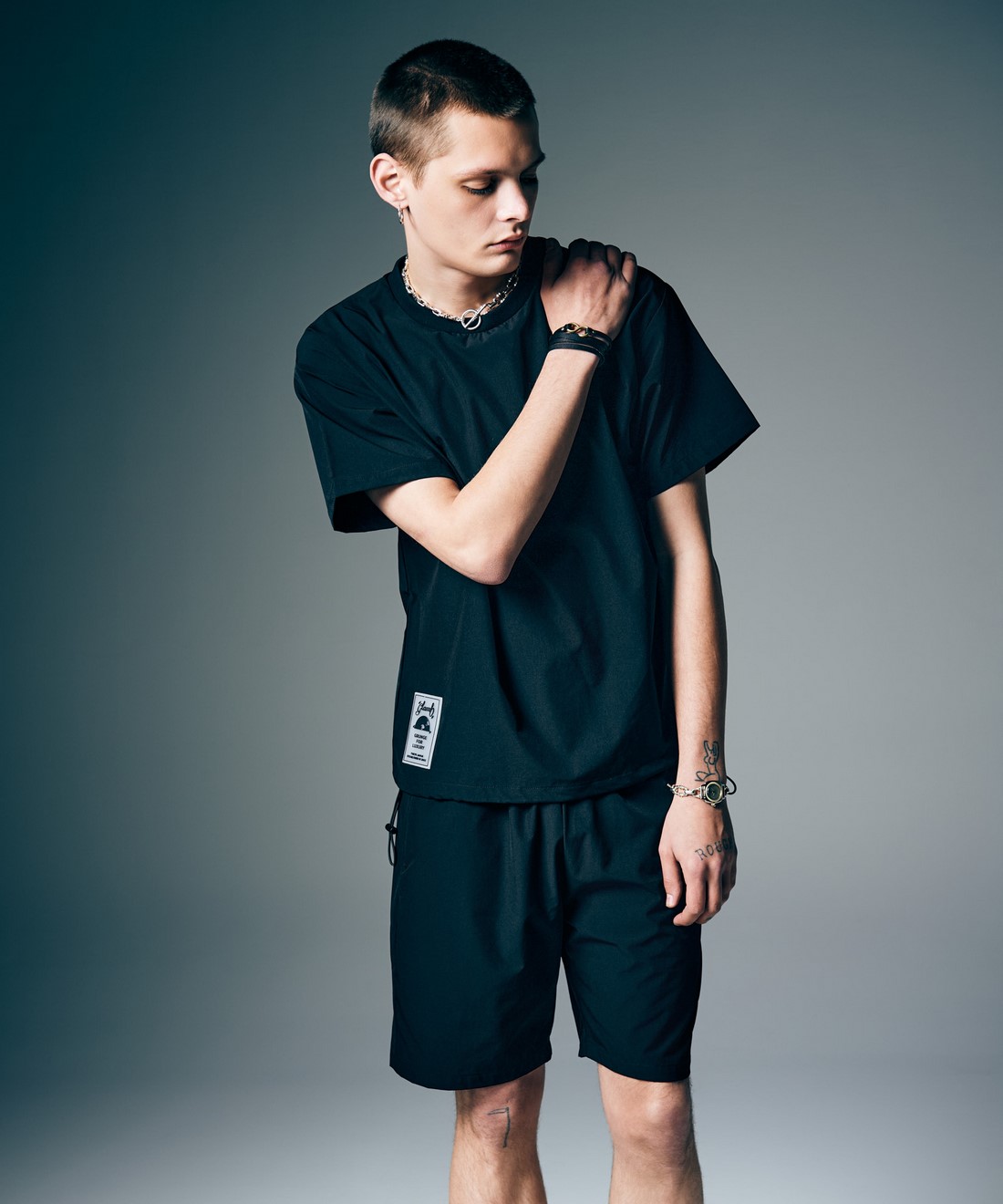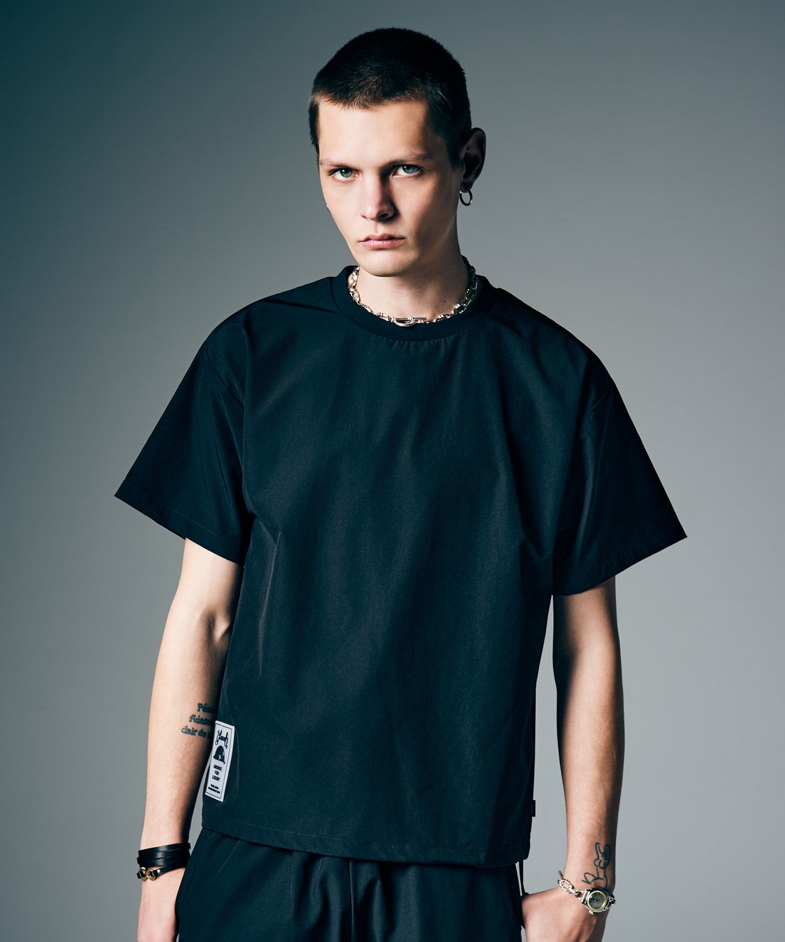今夏のデイリーユースからトラベルシーンまで幅広いシチュエーションに提案するPackable Easy Nylon Set Up。テキスタイルにはドライな肌触りと快適な伸縮性を備え、クリーンなスポーツテイストを感じさせるストレッチナイロンを使用。同生地を用いて上下のセットアップと収納バッグをセットにしてご提案します。オーバーサイズシルエットにまとめたトップスは裾にアジャスターをあしらってアクセントに。トップスとボトムスにはラバータグを着用時に前後に見えるようレイアウトし、アーバンアウトドアのムードを漂わせる佇まいにまとめています。
