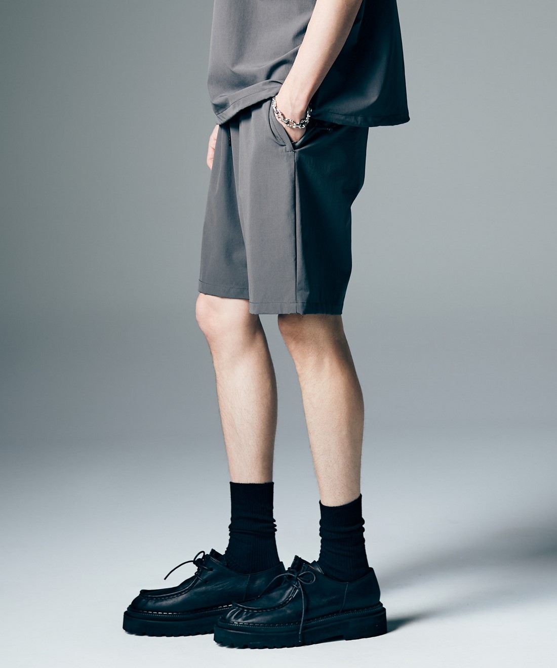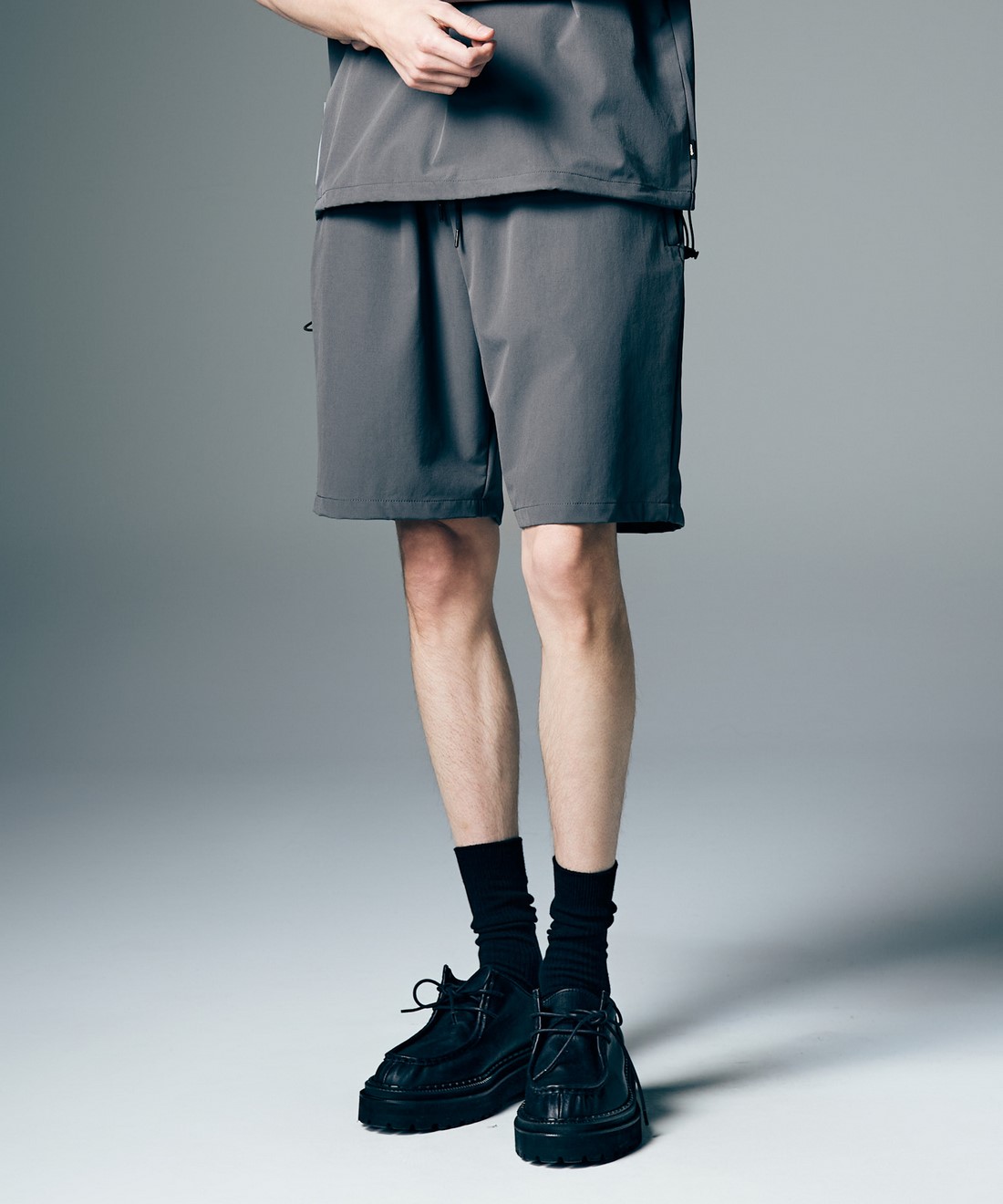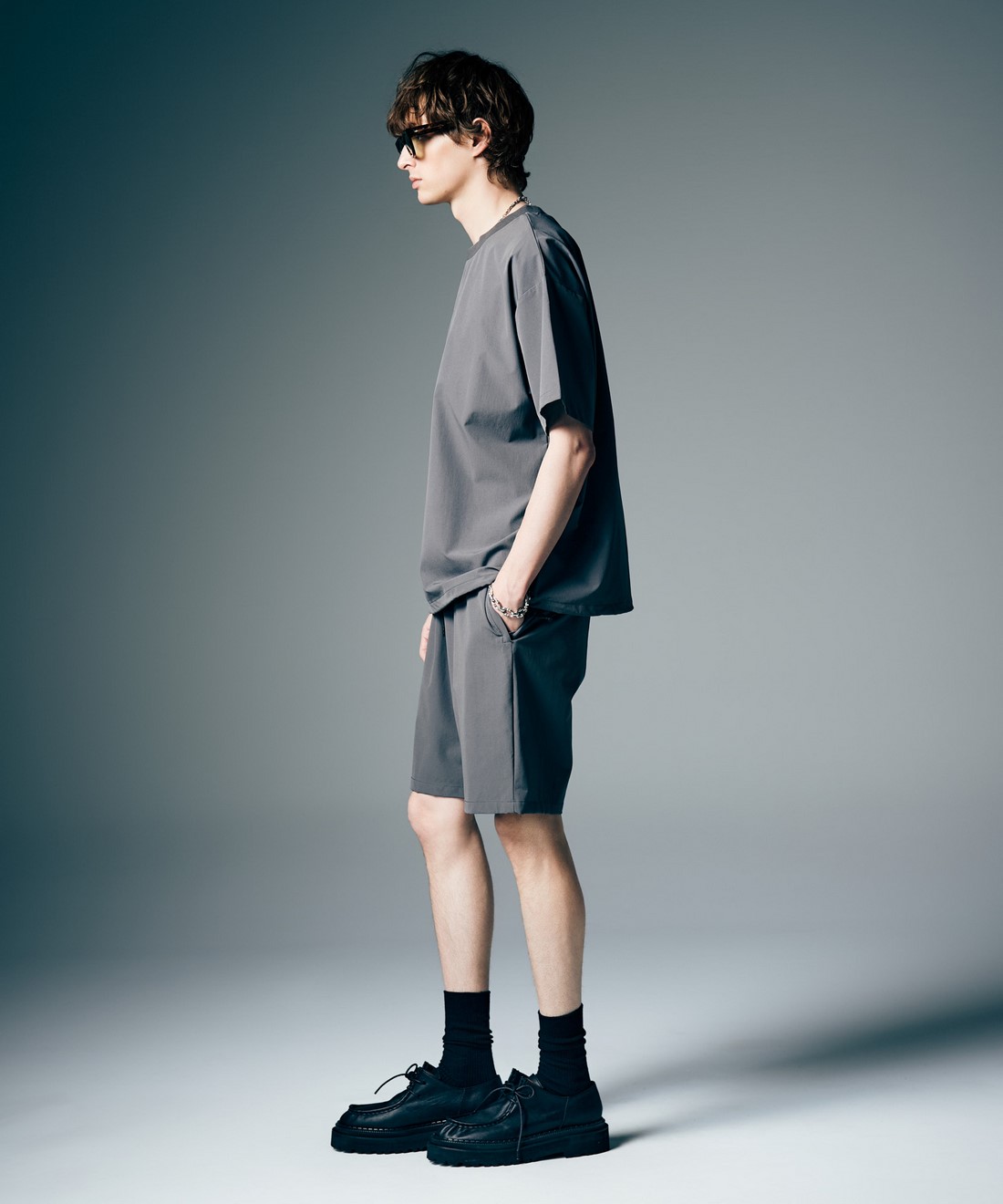 今夏のデイリーユースからトラベルシーンまで幅広いシチュエーションに提案するPackable Easy Nylon Set Up。テキスタイルにはドライな肌触りと快適な伸縮性を備え、クリーンなスポーツテイストを感じさせるストレッチナイロンを使用。同生地を用いて上下のセットアップと収納バッグをセットにしてご提案します。オーバーサイズシルエットにまとめたトップスは裾にアジャスターをあしらってアクセントに。トップスとボトムスにはラバータグを着用時に前後に見えるようレイアウトし、アーバンアウトドアのムードを漂わせる佇まいにまとめています。