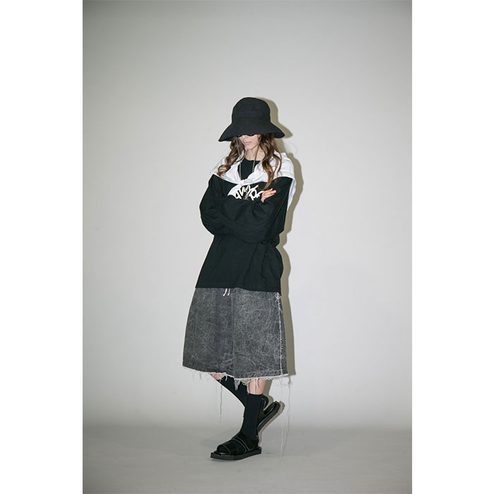 【UNISEX】my beautiful landlet マイビューティフルランドレット / Pigment print washed denim pants (black)