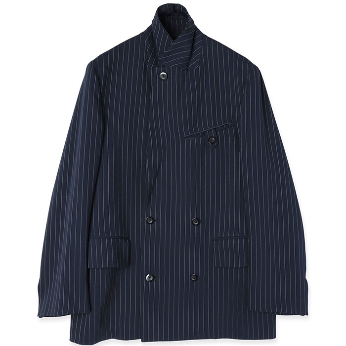 CULLNI クルニ / Stripe Double Cloth Button Tab Pocket Tailored Jacket (navy st)