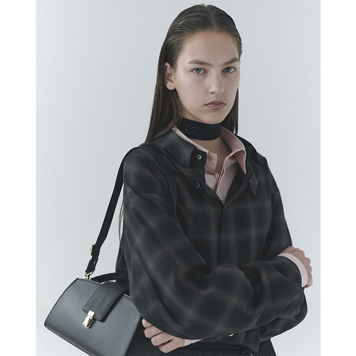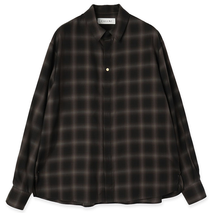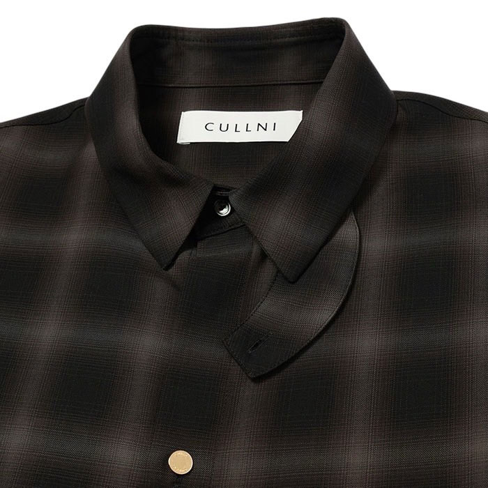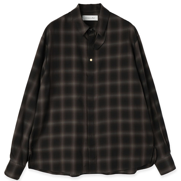 CULLNI クルニ / Ombre Check Chin Tab Long Sleeve Shirt (black)
