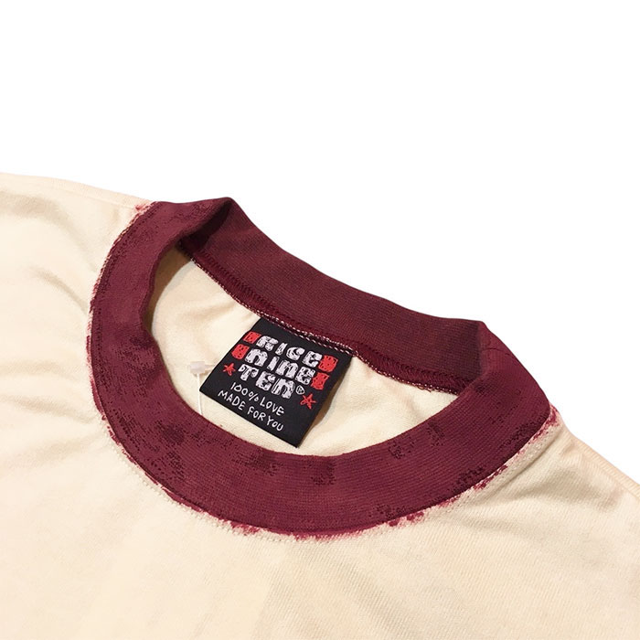 RICE NINE TEN ライスナインテン / HAND PAINT RINGER T SHIRT (champagne)