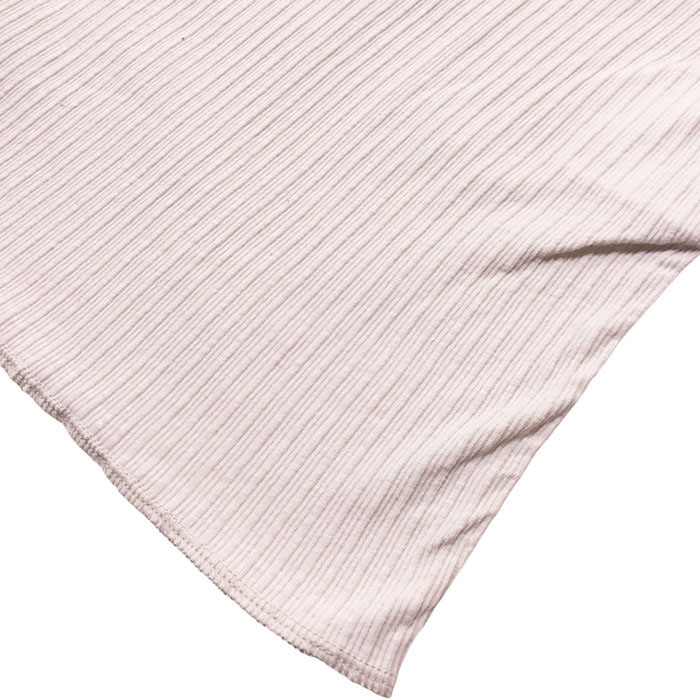 インナーとして着用した際に、ほどよく見えるリブがどのトップスのインナーに使用しても着回しのしやすい作りとなっております。
