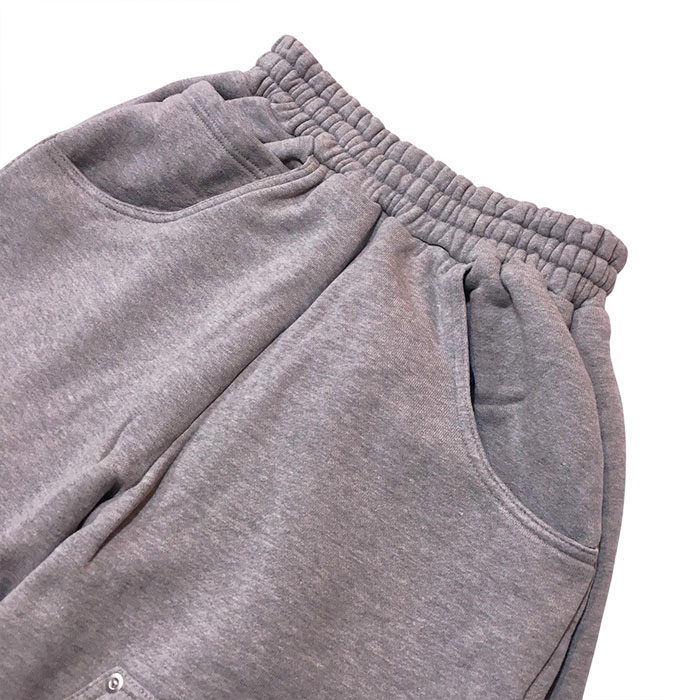 スウェット生地を使用した3/4ダブルニーパンツ。