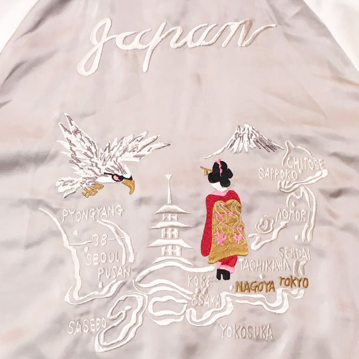 スカジャン面は刺繍を施したデザインとスカジャンらしいツヤがあります。