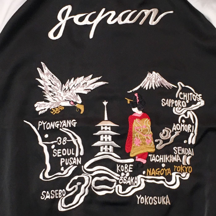 スカジャン面は刺繍を施したデザインとスカジャンらしいツヤがあります。