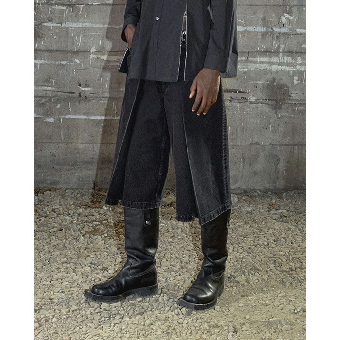 JOHN LAWRENCE SULLIVAN ジョンローレンスサリバン / Washed denim tucked wide shorts (black) [JLS-2A009-0426-20]