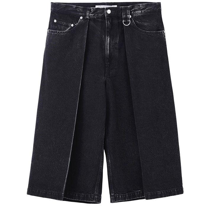 袴を想起させる深いインタックが特徴のデニムショーツ。