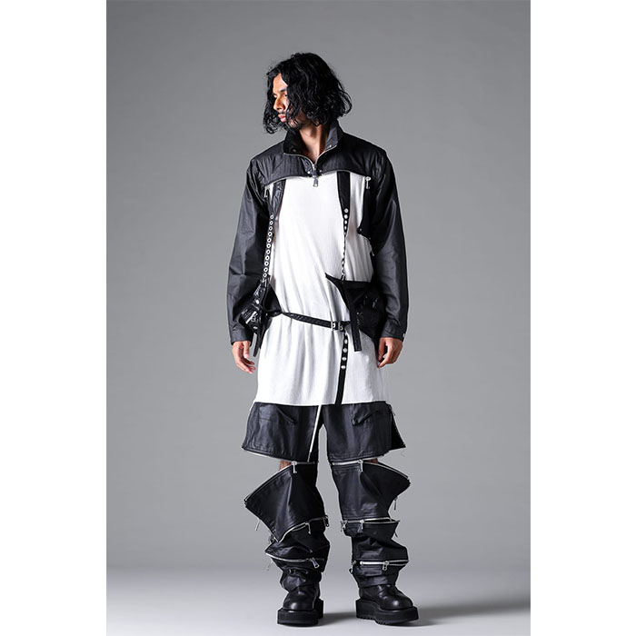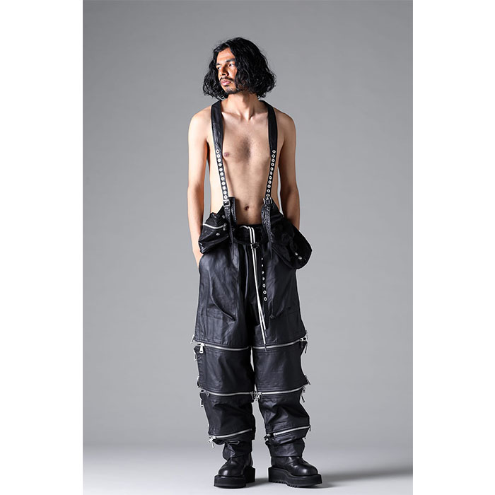 レザー見えするコーティングをし、ハードに男心擽るデザインに仕上げたバッグ。