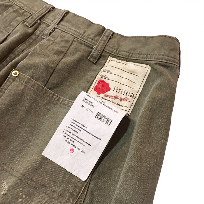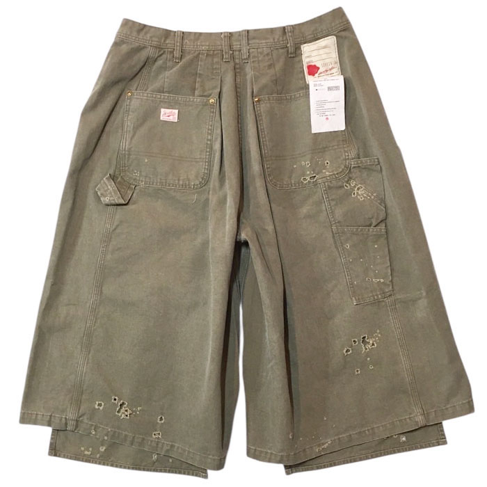 SEVESKIG セヴシグ / Damaged Double Knee Wide Bermuda Pants (khaki) [SEVESKIG-PT-SV-NRS-1007]
