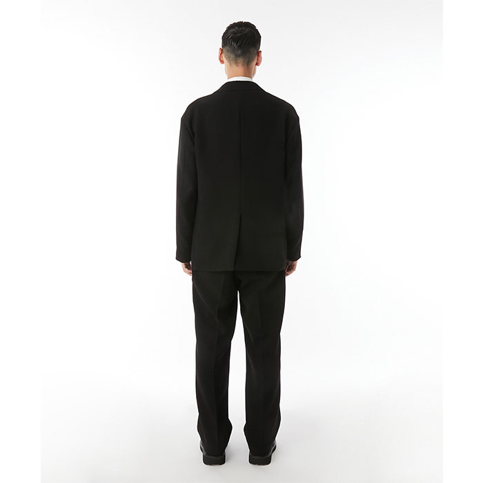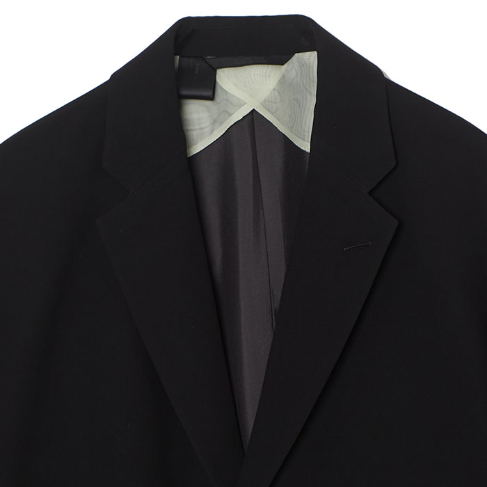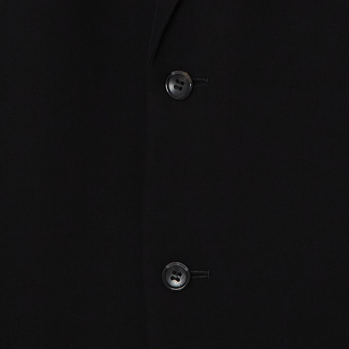 ・フラワーホール付きのノッチドラペル、シングルの二つボタン、シームポケットを採用しソリッドな印象に。フロント、内ポケットには各パートの名称が刻印された、オリジナルの水牛ボタン。左袖にはN.HOOLYWOOD COMPILEのアイコンであるブラックのブランドネームを配置。