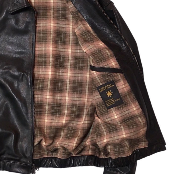 ■素材 : GOATSKIN / BODY LINING:POLYESTER60% RAYON35% POLYURETHANE5% / SLEEVE LINING:POLYESTER100% / POCKT LINING:COTTON100% / 刺繍糸:POLYESTER100%