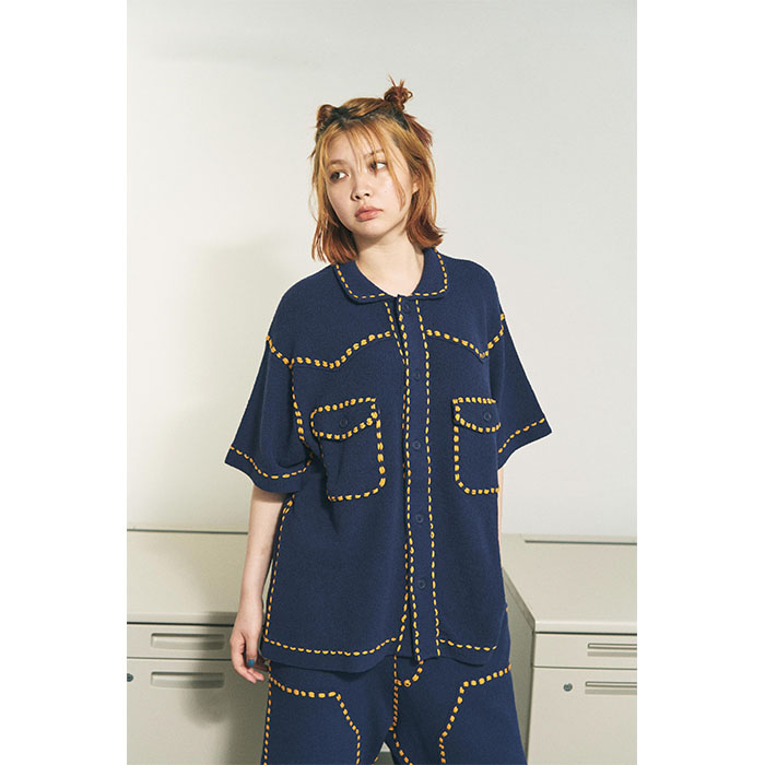 異なるスタイルのステッチワークを施したショーツとセットアップで組み合わせて、夏のユニフォームとしても。