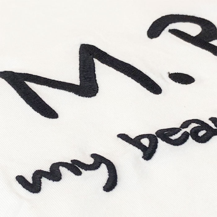 滑らかな微光沢のコットン生地に「M.B.L my beautiful landlet」とブランドロゴが刺繍されたオーバーサイズTシャツ。