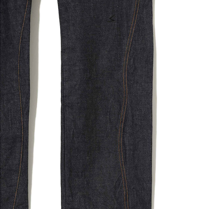今シーズンのテーマでもある歪みと曲線美、そして生デニム特有の力強さと美しさが織成す1本に仕上がって下ります。
