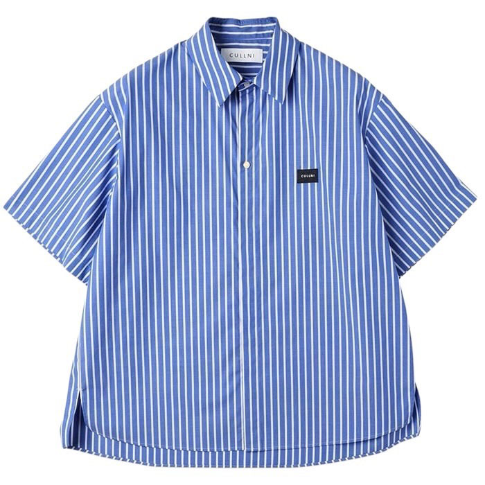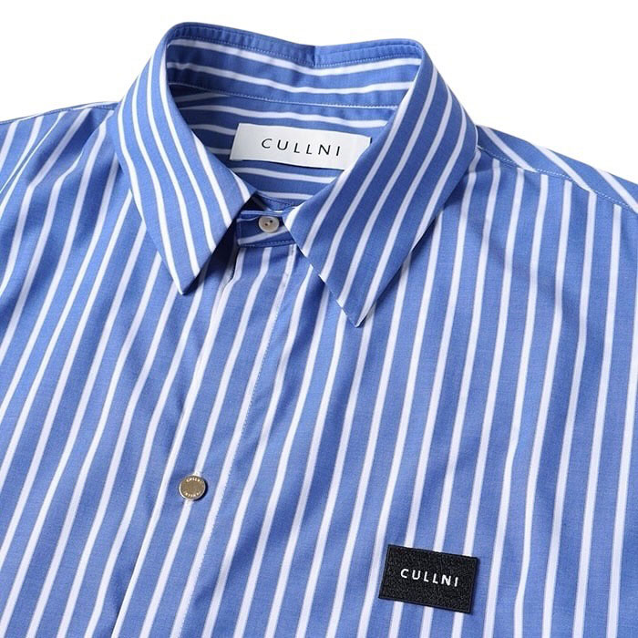 CULLNI クルニ / High Count Broad Embroidery Patch Short Sleeve Stripe Shirt (blue st) [CULLNI-BS-012B]