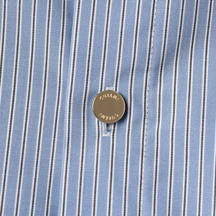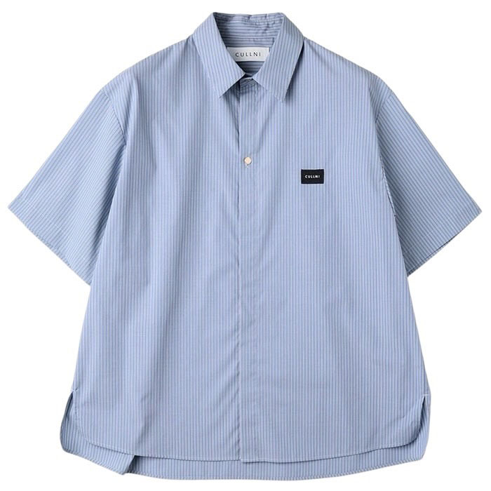 CULLNI クルニ / High Count Broad Embroidery Patch Short Sleeve Stripe Shirt (blue x brown) [CULLNI-BS-012B]