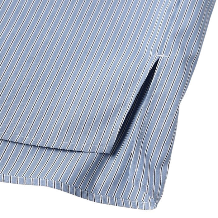 コットン/ポリエステルのストライプ柄のブロード素材を使ったベーシックシャツ。