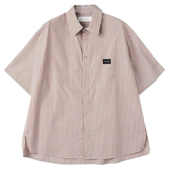 CULLNI クルニ / High Count Broad Embroidery Patch Short Sleeve Stripe Shirt (camel st)