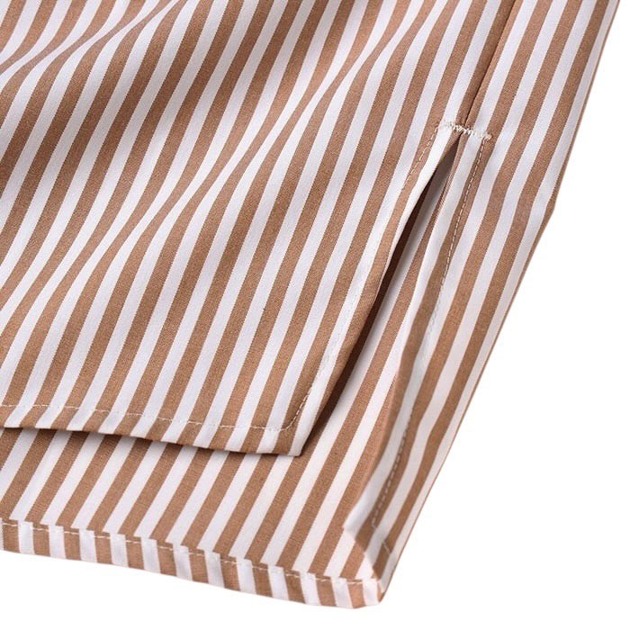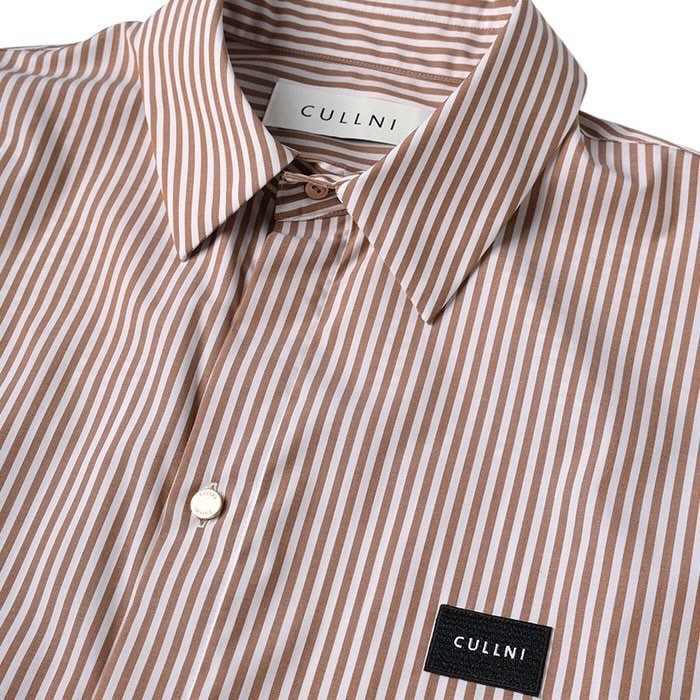 CULLNI クルニ / High Count Broad Embroidery Patch Short Sleeve Stripe Shirt (camel st) [CULLNI-BS-012B]