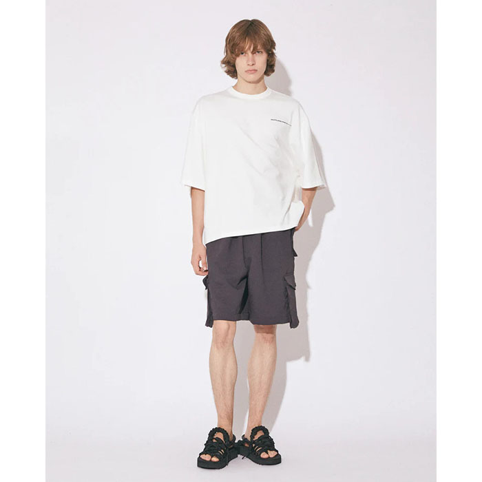 ・アームホールが肩から落ちたフォルムが特徴的なTシャツ