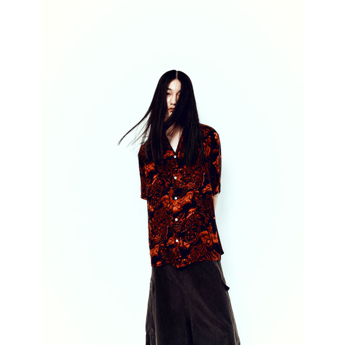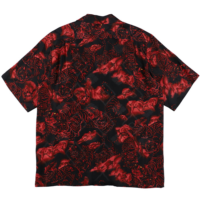 NIPOALOHA ニポアロハ / SILK CUPRO SHORT SLEEVE ALOHA SHIRT (ONE HUNDRED TIGERS x BLACK x RED TIGER)