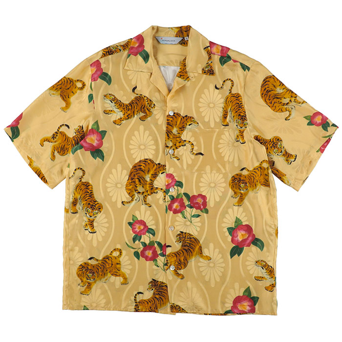 NIPOALOHA ニポアロハ / SILK SHORT SLEEVE ALOHA SHIRT (TIGER CAMELLIA x YELLOW)