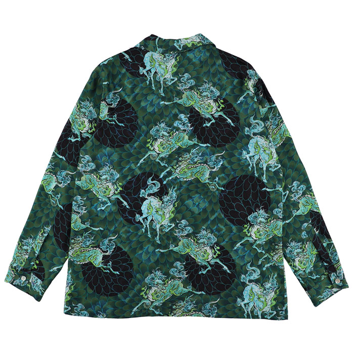 NIPOALOHA ニポアロハ / SILK CUPRO LONG SLEEVE ALOHA SHIRT (QILIN AND CHRYSANTHEMUM x VIRIDIAN)