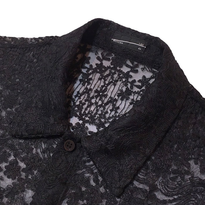LAD MUSICIAN ラッドミュージシャン / TULLE EMBROIDERY LACE SHORT SLEEVE SHIRT (black)