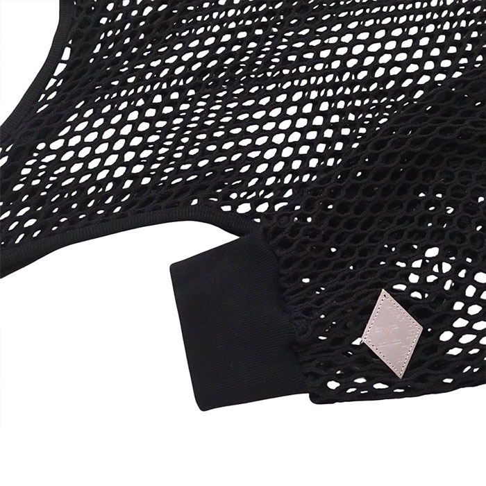 メッシュ素材のテイルロングスリーブ。