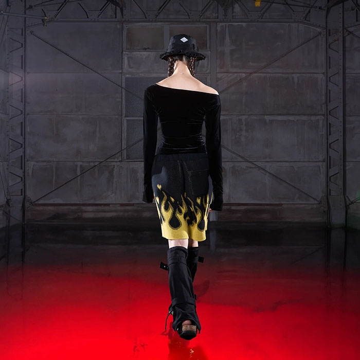 el conductorH コンダクター / COTTON KNIT FLAME PATTERN SHORTS (black)