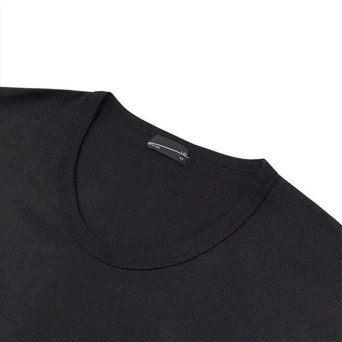 オリジナルの天竺素材を使用したUネックのレギュラーTシャツ。