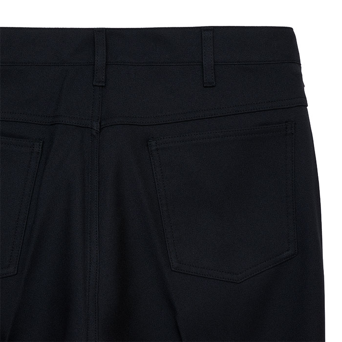 スッキリとしたスラントポケットや脚に沿うストレートシルエットが、ワークと上品さを兼ね備えた佇まいを生む。